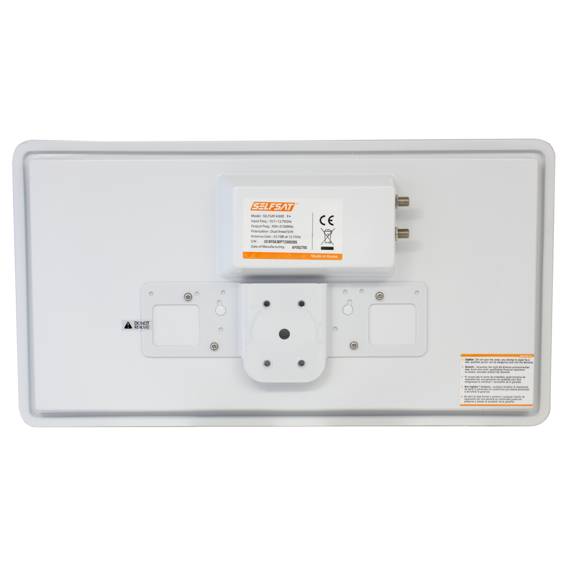 Häufig ist der Empfang mit einer großen Satellitenantenne unmöglich. Jeder der trotzdem hohe TV-Gebühren sparen möchte kann dann u.U. auf die 0,47m, SelfSat H30D4 zurückgreifen, um die TV-Vielfalt genießen zu können. Sie bietet extrem gute empfangswerte trotz ihrer kleinen Abmessungen (51x30x6,5cm) und unauffälligen Erscheinung.Die Selfsat H30D4 eignet sich sowohl für digitale als auch HDTV Programme. Sie hat trotz ihrer kleinen Abmessungen eine außerordentliche Leistungsstärke. Die 0,47m, SelfSat H30D4 ist eine Quad-LNB-Antenne, d.h. Sie können direkt an dieser Antenne vier Satllitenreceiver betreiben. Die Antenne wird mit Kompass, Schrauben, Werkzeugen, Standfuß und Wandhalterung ausgeliefert.