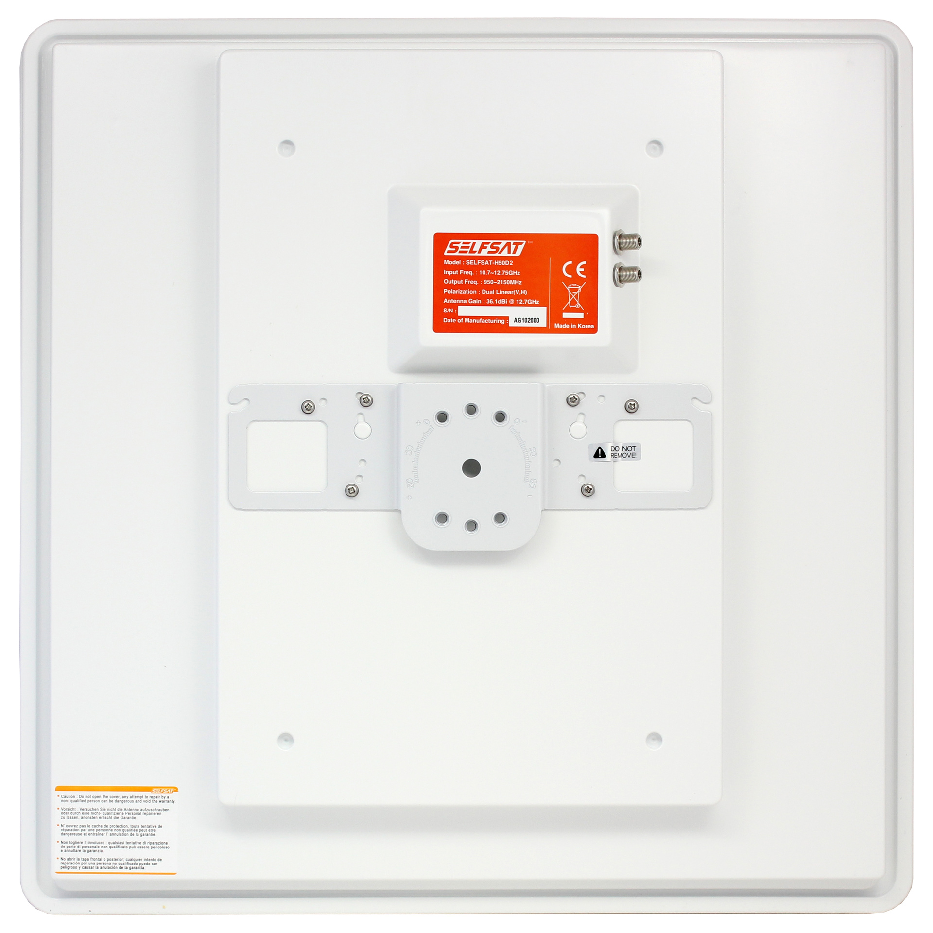 Klein und unfällig aber exterm leistungsstark ideal zum Empfang von Astra Satellitenprogrammen, wenn eine typische Satellitenantenne nicht verwendet werden kann. Die Selfsat H50D2 eignet sich sowohl für digitale als auch HDTV Programme. Sie hat trotz ihrer kleinen Abmessungen eine außerordentliche Leistungsstärke. Abmessungen: 51,5 x 51,5 cm 36,1 dB bei 12,75GHz Im Lieferumfang enthalten:Kompass und Schraubenset Geeignet für Wand und Balkonmontage.