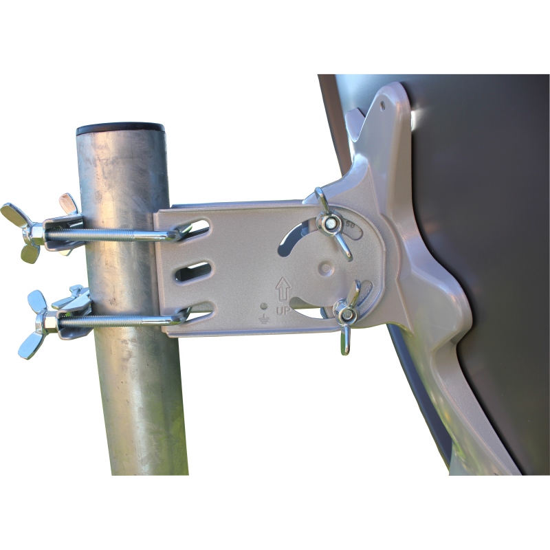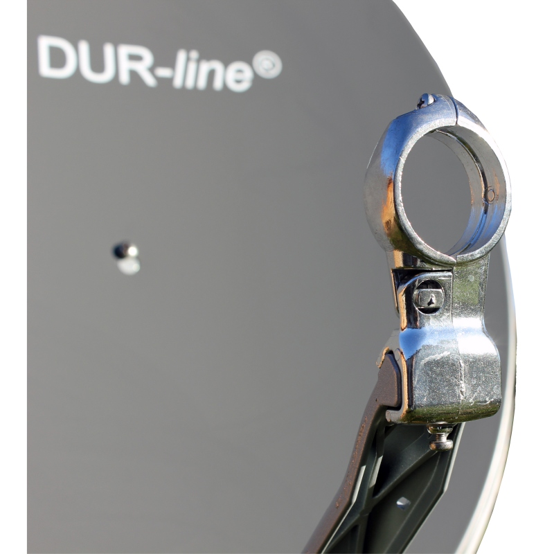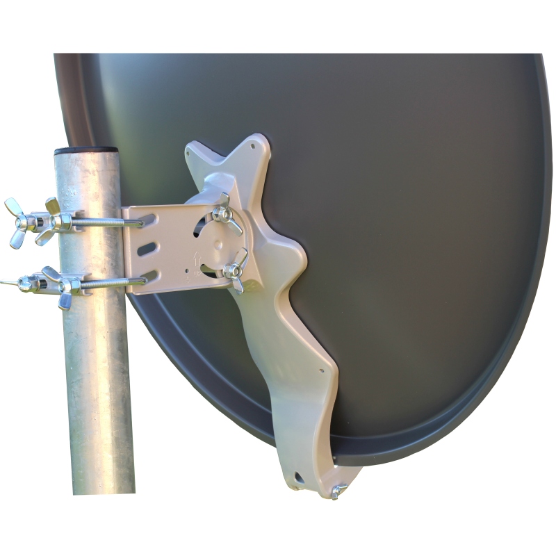 ;; Ein weiteres sehr wichtiges Detail ist der integrierte Erdungsanschluss zur Sicherung des Sat-Systems gegen Biltzschäden. Montiert werden kann die Antenne an einem Mast mit einem Durchmesser zwischen 40-95 mm. Alle Standard 40mm LNBs können mit diesem Spiegel verwendet werden. Diese 75cm Antenne wird in der Farbe anthrazit geliefert.