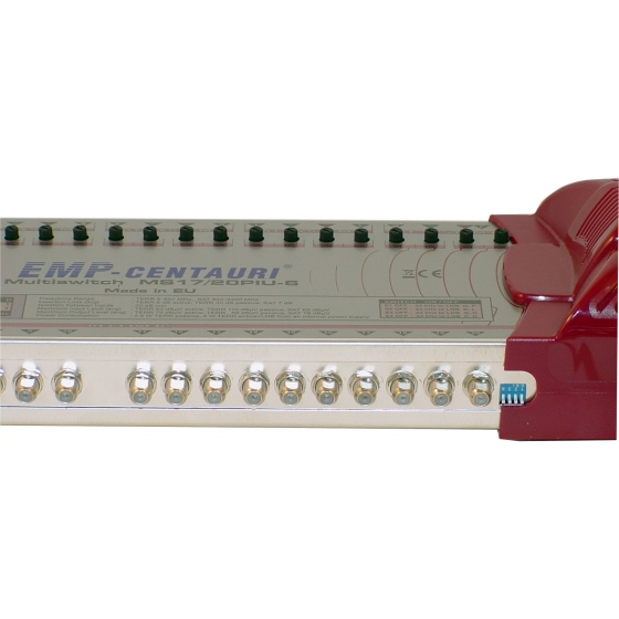 Möchte man alle TV- und Radioprogramme von vier verschiedenen Satellitenpositionen wie z.B. Astra 19,2 Grad, Astra 23 Grad, Eutelsat 9 Grad und Eutelsat 13 Grad an bis zu zwanzig Satellitenreceiver verteilen, so könnte man auf diesen EMP MS17/20PIU-6 Multischalter zurückgreifen. Dabei ist dieser Multischalter uneingeschränkt sowohl geeignet für die normalen digitalen TV-Programme als auch für die HDTV-Programme. Jeder Twin-Receiver, der an dem Multischalter betrieben wird benötigt zwei Leitung - für jeden Tuner eine. An dem EMP MS17/20PIU-6 können sowohl Quad als auch Quattro-LNBs betrieben werden, das heißt wenn Sie bisher in Ihrer Satellitenanlage ein LNB mit integriertem Multischalter nutzen (Quad-LNB) braucht dieses nicht ausgetauscht werden. Es kann weiterhin genutzt werden. Die Signalstärke kann für jeden Eingang individuell über Drehschalter festgelegt werden, so dass unterschiedliche Signalstärken Rechnung getragen werden kann. Dieser Multischalter erlaubt es auch die terrestrischen Signale einer Antenne den Receivern zur Verfügung zu stellen. Der EMP MS17/20PIU-6 hat darüber hinaus auch noch einen Anschluss zur Erdung.
