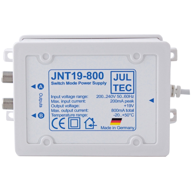 Jultec ist DER deutsche Premiumhersteller von Multischaltern für professionelle Anwender. Gerade auch für Netzbetreiber, die ein Schwergewicht auf Langlebigkeit, Wartungsfreiheit und kompromisslose Spitzenqualität legen bei der Auswahl, der zu verwendenden Komponenten, gibt es meist keine Alternativen zu den Produkten von Jultec. Alle Jultec Multischalter sind natürlich auch bestens für den HDTV-Übertragungen geeignet. Die Jultec Schalter der JPS-Reihe sind extrem flexibel, denn diese Multischalter verbinden die Vorzüge von normalen Multischaltern mit denen von Einkabelsystemverteilern. Dank der Einkabel/Unicable/En50494-Unterstützung lässt sich bereits bei der Installation der Sat-Anlage mitunter sehr viel Zeit und Geld sparen: Die Ersparnis kann meist dann realisiert werden, wenn man vorher einen KabelTV-Anschluss hatte, und nun auf Satellitenempfang umstellen möchte. Es ist dann mit diesem Multischalter möglich, das vorhandene Kabel weiter zu verwenden, es brauchen keine neuen Kabel verlegt werden. Mit dem JPS0501-12TN können an dem Ausgang alle Programme von einem Satelliten z.B. Astra 19.2 Grad verteilt werden. Dieser Multischalter ist mit einem externen Netzteil ausgestattet. Der Stromverbauch des Jultec JPS0501-12TN ist konstruktionsbedingt sehr gering (u.a. durch Standby-Betrieb). Der niedrige Stromverbauch senkt die monatlichen Energiekosten. Die höchste Signalqualität und Langlebigkeit wird durch das verwendete Spritzgussgehäuse gefördert. Einerseits schirmt es sehr effektiv Störsignale ab (Class A), andererseits lässt das verwendete Material der F-Stecker keine elektrochemische Korrosion zu. Die Mehrfachkontaktierung der F-Stecker stellt eine perfekte Signal-Übertragung zwischen Koaxialkabel und Multischalter her - so dass der Sinn einer Investition in ein hochwertiges Koaxialkabel nicht durch Störungen/Verluste an Schnittstellen seine Grundlage verliert. Der Jultec JPS0501-12TN kann auch die Signale von einer terrestrischen Antenne den Receivern zuführen. Alternativ kann hier der Kabelanschluss mit eingeschleust werden. Aufgrund der Rückkanalfähigkeit dieses Schalter-Anschlusses können so interaktive Dienste genutzt werden. Die Herstellung der Jultec-Produkte erfolgt in Deutschland unter höchsten Qualitätsnormen. Die Multischalter der JPS Serie können als Einzelgeräte verwendet werden oder in einem großen Verteilsystem als abschließender Schalter mit einem vorangestellten JAS-Gerät.