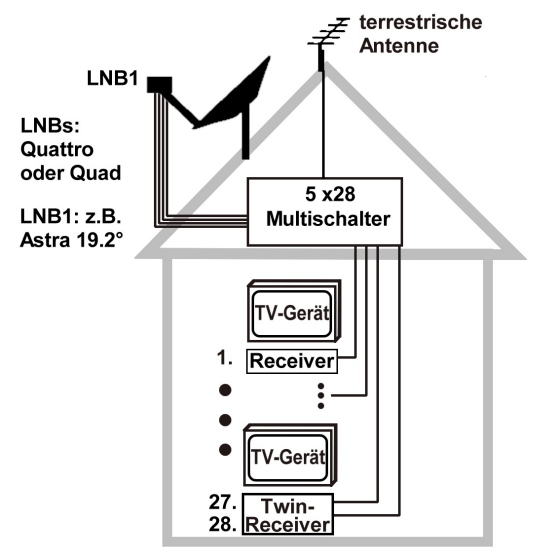 Jultec ist DER deutsche Premiumhersteller von Multischaltern für professionelle Anwender. Gerade auch für Netzbetreiber, die ein Schwergewicht auf Langlebigkeit, Wartungsfreiheit und kompromisslose Spitzenqualität legen bei der Auswahl, der zu verwendenden Komponenten, gibt es meist keine Alternativen zu den Produkten von Jultec. Alle Jultec Multischalter sind natürlich auch bestens für den HDTV-Übertragungen geeignet. Die Jultec Schalter der JPS-Reihe sind extrem flexibel, denn diese Multischalter verbinden die Vorzüge von normalen Multischaltern mit denen von Einkabelsystemverteilern. Dank der Einkabel/Unicable/En50494-Unterstützung lässt sich bereits bei der Installation der Sat-Anlage mitunter sehr viel Zeit und Geld sparen: Die Ersparnis kann meist dann realisiert werden, wenn man vorher einen KabelTV-Anschluss hatte, und nun auf Satellitenempfang umstellen möchte. Es ist dann mit diesem Multischalter möglich, das vorhandene Kabel weiter zu verwenden, es brauchen keine neuen Kabel verlegt werden. Dieser Schalter hat einen Ausgang. An diesem kann das vorhandene Kabel, die sog. Stammleitung mit bis zu ZWÖLF Satellitenreceiver betrieben werden. Mit dem JPS0901-12T können an dem Ausgang alle Programme von zwei Satelliten z.B. Astra 19.2 und Eutelsat 13 Grad an die Receiver verteilt werden. Für die Ansteuerung von von eins bis acht reichen UNICABLE taugliche Receiver. Für die Ansteuerung von neun bis zwölf werden JESS kompatible Geräte benötigt. Dieser Multischalter ist mit einem externen Netzteil ausgestattet. Der Stromverbauch des Jultec JPS0901-12T ist konstruktionsbedingt sehr gering (u.a. durch Standby-Betrieb). Der niedrige Stromverbauch senkt die monatlichen Energiekosten. Die höchste Signalqualität und Langlebigkeit wird durch das verwendete Spritzgussgehäuse gefördert. Einerseits schirmt es sehr effektiv Störsignale ab (Class A), andererseits lässt das verwendete Material der F-Stecker keine elektrochemische Korrosion zu. Die Mehrfachkontaktierung der F-Stecker stellt eine perfekte Signal-Übertragung zwischen Koaxialkabel und Multischalter her - so dass der Sinn einer Investition in ein hochwertiges Koaxialkabel nicht durch Störungen/Verluste an Schnittstellen seine Grundlage verliert. Der Jultec JPS0901-12T kann auch die Signale von einer terrestrischen Antenne den Receivern zuführen. Alternativ kann hier der Kabelanschluss mit eingeschleust werden. Aufgrund der Rückkanalfähigkeit dieses Schalter-Anschlusses können so interaktive Dienste genutzt werden. Die Herstellung der Jultec-Produkte erfolgt in Deutschland unter höchsten Qualitätsnormen. Die Multischalter der JPS Serie können als Einzelgeräte verwendet werden .