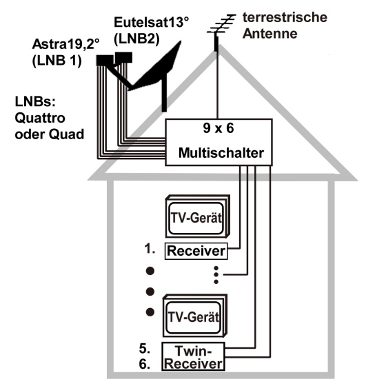 | Anzahl der empfangbaren Sat-Positionen des Multischalters: | Zwei |