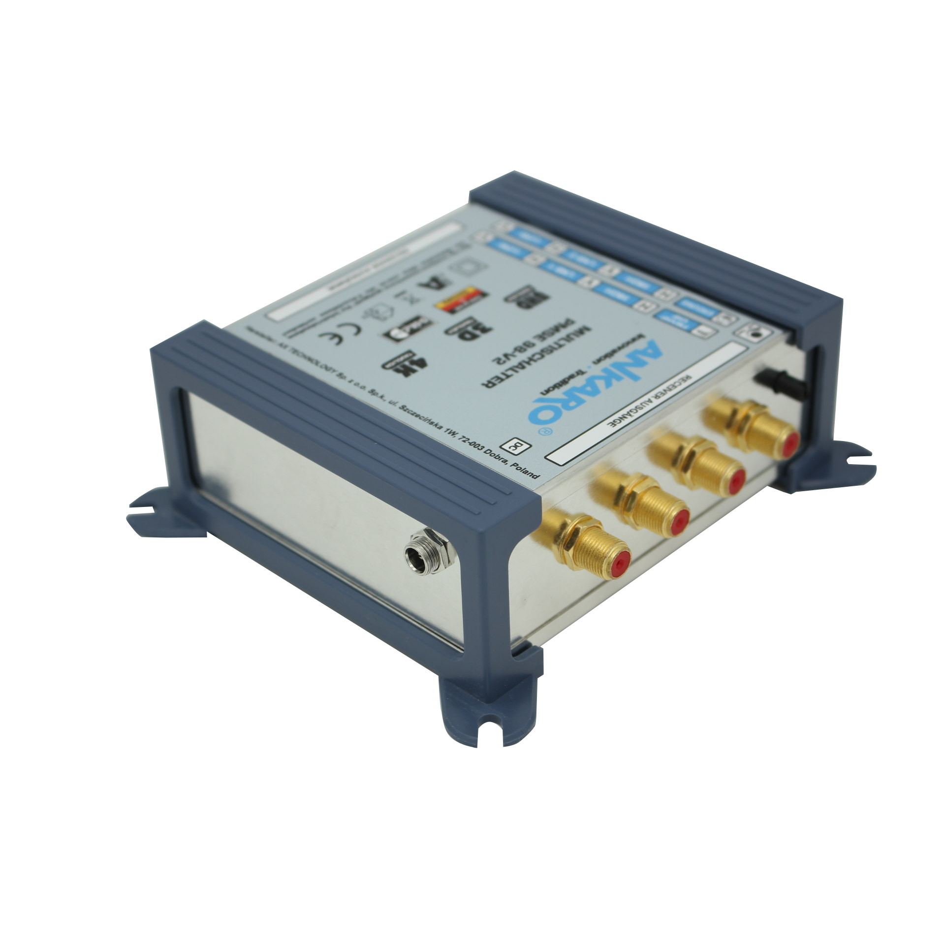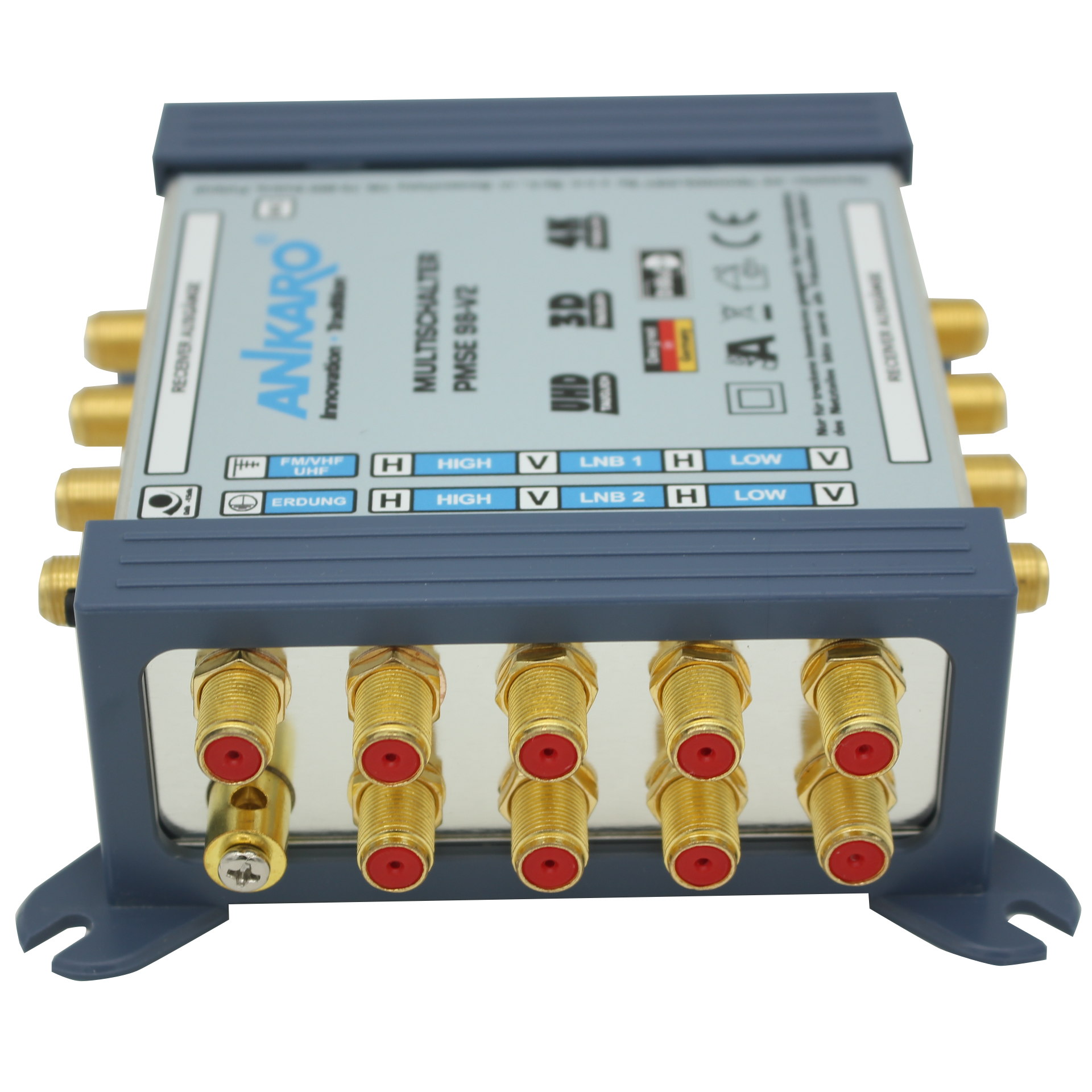 Mit diesem Ankaro Multischalter ist es möglich, alle analogen und digitalen TV- und Radio-Programme von zwei Satelliten (z.B. Astra 19,2 ° Ost und EutelSat 13° Ost Hotbird) zu empfangen und an bis zu 8 Nutzer/Receiver im Haus zu verteilen. An dieses Gerät kann zusätzlich noch eine terrestrische Antenne angeschlossen werden und ebenfalls den 8 Nutzern zugänglich gemacht werden (Die Signalstärke hiervon ist auch regelbar). Die F-Steckeranschlüsse sind vergoldet. Im Lieferumfang sind zusätzlich 17 goldene F-Stecker mit Dichtung enthalten. Der Multischalter eignet sich natürlich auch für den Empfang aller aktuellen Übertragungsstandards wie UHD-TV, 4k-TV und 3D. Voraussetzung hierfür ist lediglich eine Satelliten Antenne, zwei Quattro LNCs oder Quad-LNCs und eine der Zahl der Nutzer entsprechende Anzahl von digitalen oder analogen Sat-Receivern. Der Multischalter wird mit passendem externen Netzteil geliefert. Der Schalter ist für die Installation in geschlossenen Räumen gedacht. Über einen Drehregler kann stärke des terrestrischen Signals angepasst werden.