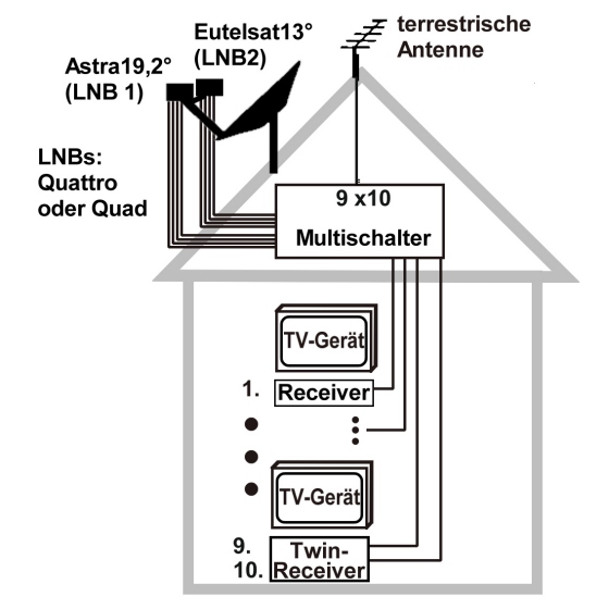 | Anzahl der empfangbaren Sat-Positionen des Multischalters: | Zwei |