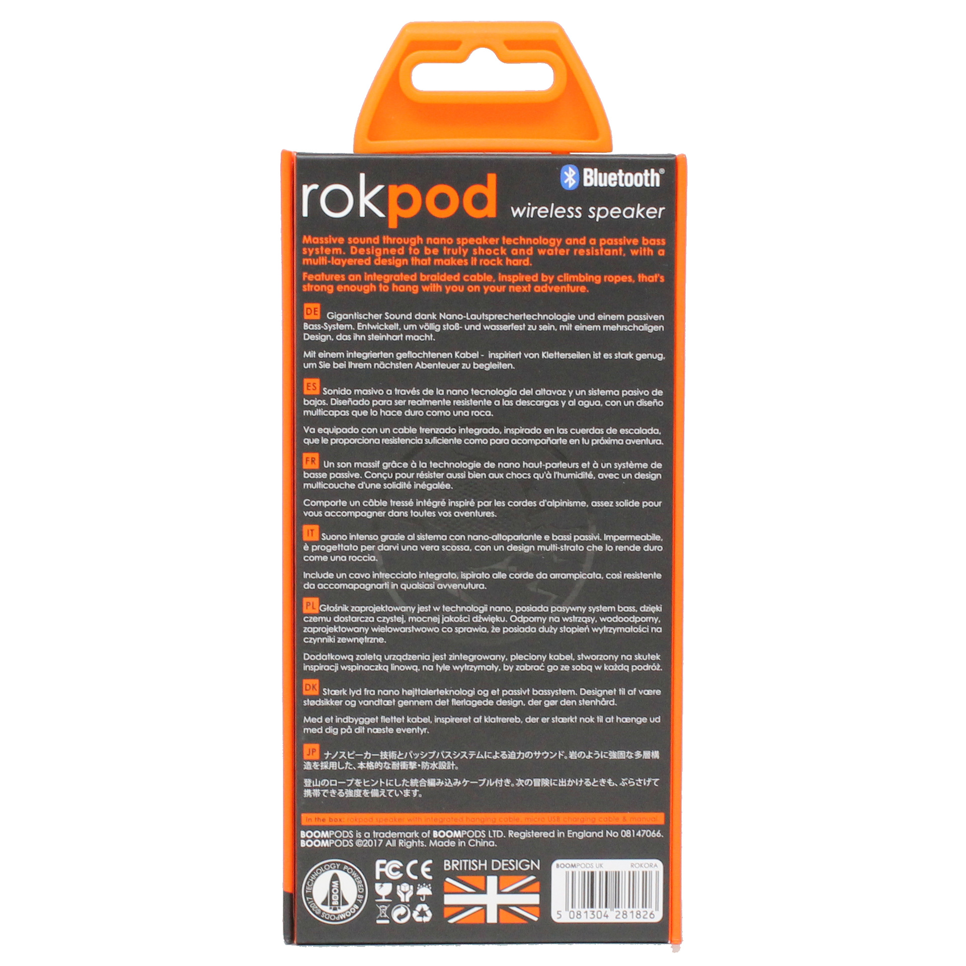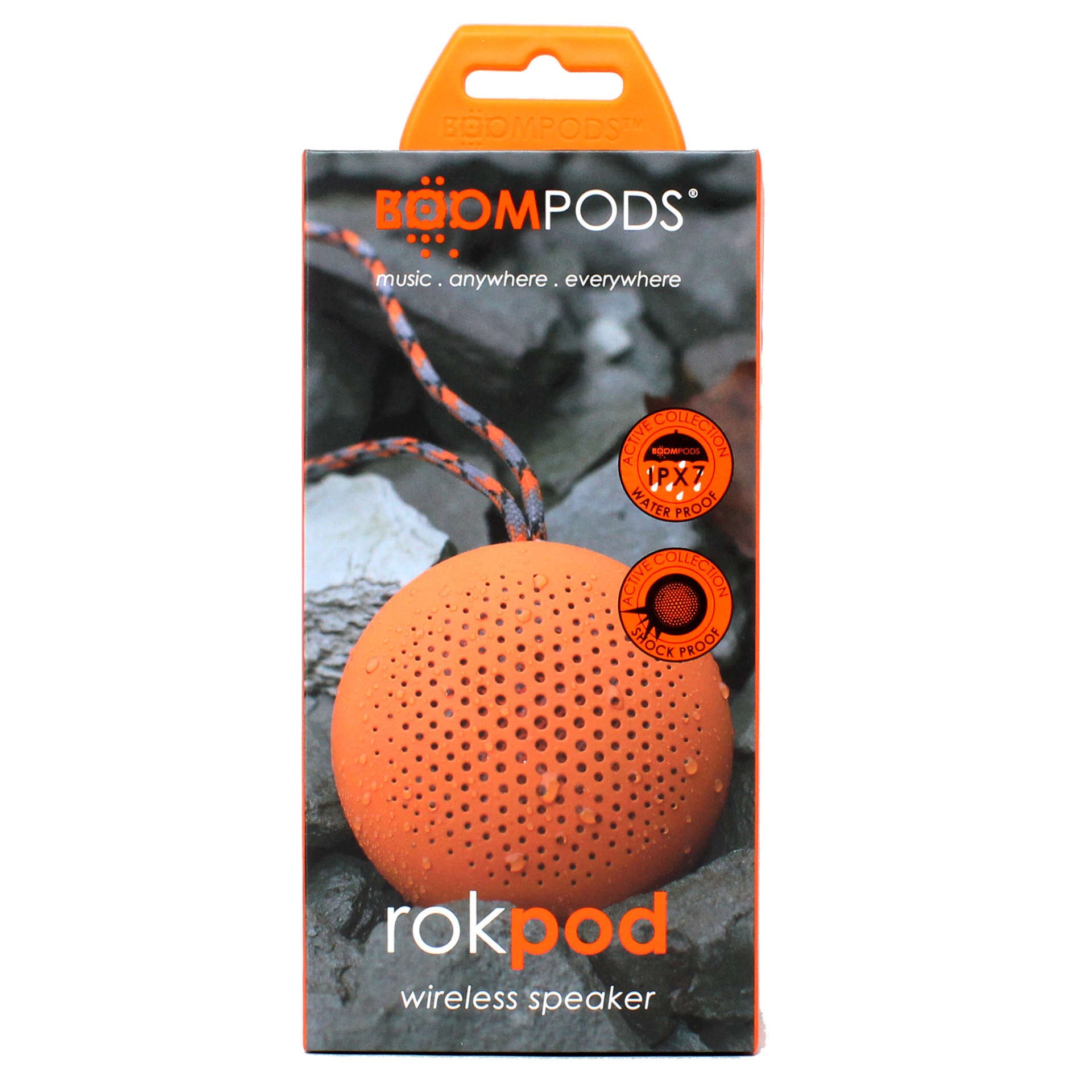 Wer bei Outdoor-Aktivitäten wie Skateboardfahren / Mountainbiken / Rudern / Inlinern / Trekking / Klettern / Zelten nicht auf coole Musik mit einem satten passiven Bass verzichten will, der greift zum Boompods Rokpod. Dieses äußerst robuste, IPX7 wasserdichte, kabellose Speaker System sorgt für bis zu fünf Stunden für gute Laune. Dank Bluetooth 4.1 Kompatibilität gestaltet sich das Setup sehr einfach und die Verbindungsaufnahme zu allen aktuellen Geräen (Smartphone, Tablet, etc.) unkompliziert. Bei der Entwicklung des Boompods Rockpod wurde auch darauf Wert gelegt, dass Telefon-Anrufe angenommen werden können. Die Kabellosreichweite beträgt 10m im Freien. Mit der Schlaufe lässt sich der Boompods Rokpod bequem am Handgelenk führen oder auch mit einem Handgriff am Gürtel / Rucksack / Karabinerhaken / etc befestigen..