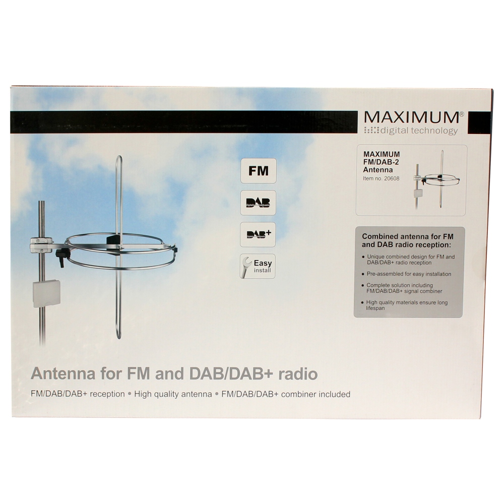 ;; Die Maximum FM / DAB+ ist eine Runddipol Radio UKW Antenne vom Hersteller Maximum. Sie ist aus wetterbeständigem Aluminium hergestellt und eignet sich zur Montage am Antennenmast der Satellitenantenne. Die Antenne ist für eine Mastmontage vorgesehen und hat eine Gesamtlänge von ca. 59cm. Das Radiosignal kann mit passender Weiche eingeschleußt werden. Technische Daten: Für FM / DAB / DAB+ Empfang von FM 87,5-108 MHz, Gewinn: 1-2 dB, Impedanz: 75 Ohm Mastdurchmesser: 30-60mm