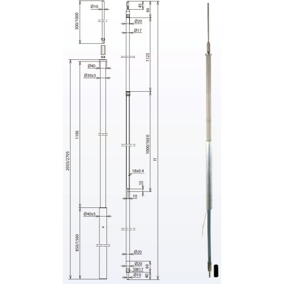 ;;Fangspitze: 1000m, Stützrohr 2055mm, Außendurchmesser Leitung 20mm, LeitermaterialKupfer, Stützrohrmaterial: GFK, Alu