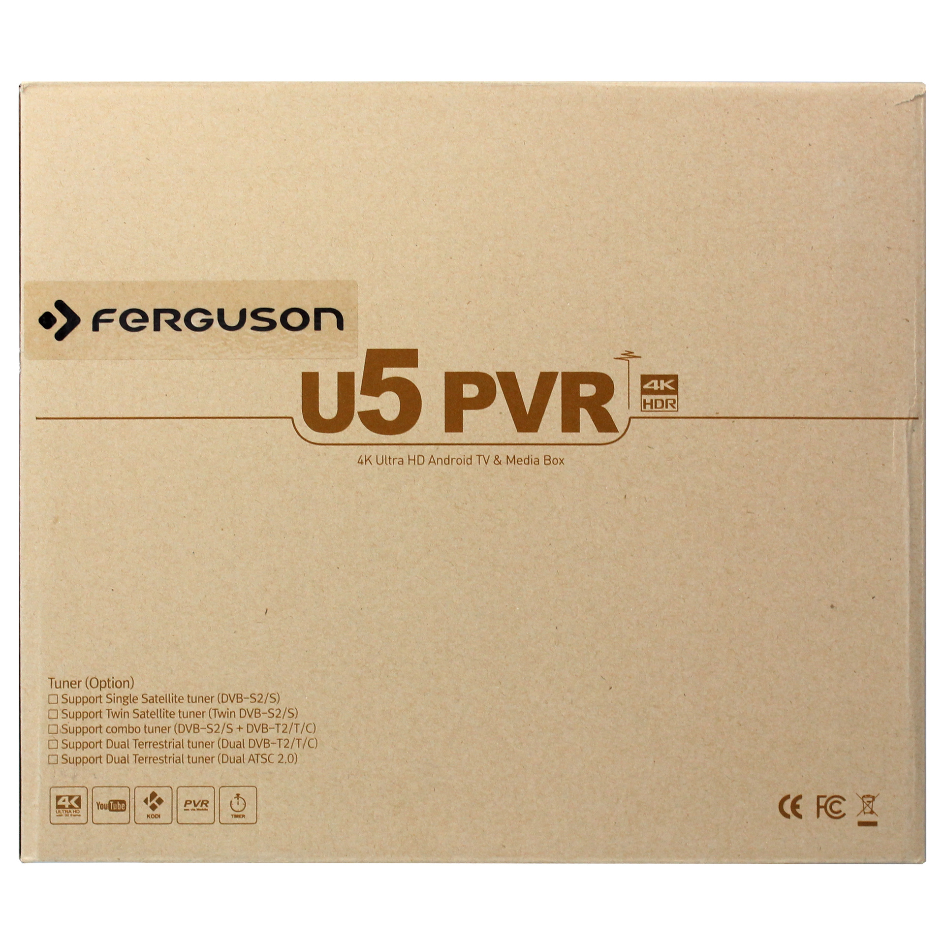 Das puristische Design des Ferguson U5 PVR überzeugt, genauso die bewährte Leistung und Funktionsvielfalt aus dem Hause Ferguson. Er ist ermöglich jeden Empfangsweg für Radio und TV-Empfang. Egal ob Satelliten-, Kabelfernsehen oder terrestrischen DVB-T /T2 Empfang. Leistungsstarke Hardware gepaart mit intuitiver Bedienbarkeit machen das Gerät zu einem soliden Empfänger für den 4k / UHD Genuss. Er erlaubt den Zugriff auf viele Online Mediatheken, wie z.B. Netflix. Der Integrierte Mediaplayer spielt alle Audio und Videodateien, die man bereits im Heimnetz hat. Ethernet und auch Wifi ermöglichen Zugriff auf das Internet und Heimnetzwerk. Dank USB Anschluss sind Aufzeichnungen auf externe Massenspeicher möglich. Es ist auch möglich eine interne Sata-Festplatte direkt zu betreiben. Der Zugang zum Festplatten Einschub ist über die Unterseite des Gehäuses sehr leicht zugänglich. Der Receiver verfügt über einen Smart-Kartenleser. Die kompakten Abmessungen, der geringe Stromverbrauch sowie der kleine Preis des Ferguson Ariva 4k schonen Ressourcen.