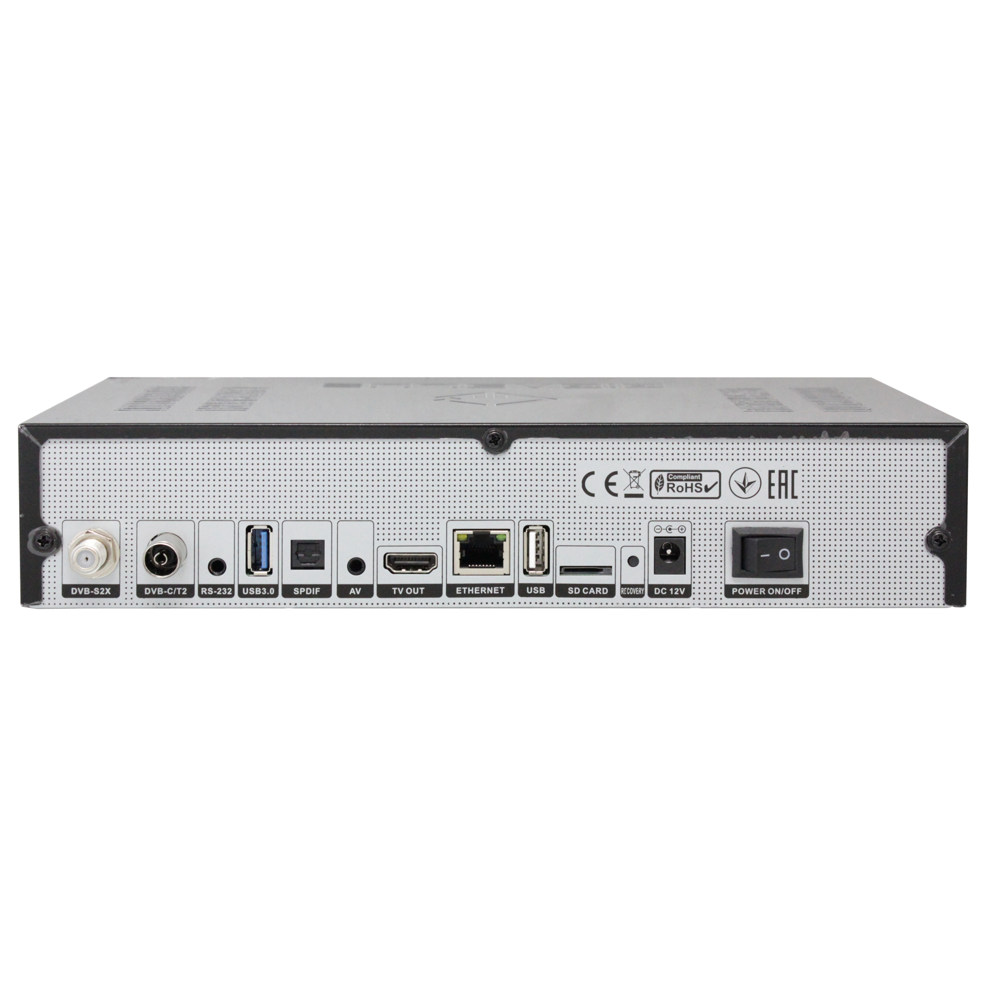 Der Gigablue UHD Trio 4k ist der erste Receiver Enigma von Gigablue. Er unterstützt DVBS2, DVBS, DVBT2, DVBC/2 und damit Kabelfernsehen, Satellitenfernsehen und terrestrisches Fernsehen. Mit dem DVBS2X ist auch ein Multistream Tuner integriert. Mittels Ethernetanschluss und Wifi kann auch auf das Internet und Netzwerkquellen zugegriffen werden. Aufnahmen sind auf externe USB-Speicher möglich - dazu verfügt der Receiver über USB 2.0 und 3.0 Anschlüsse.