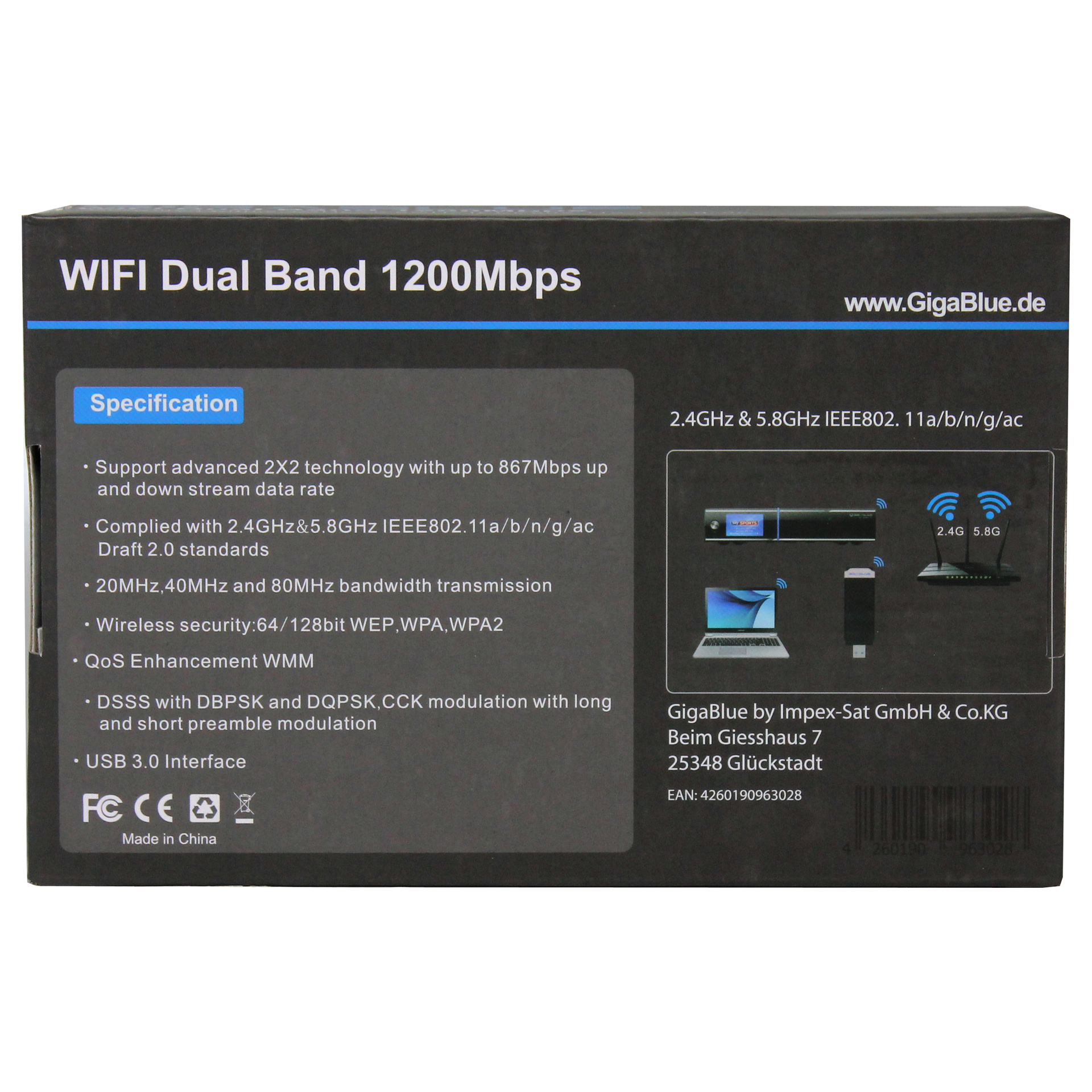 Produktinformationen "Gigablue Wlan Stick 1200Mbit"