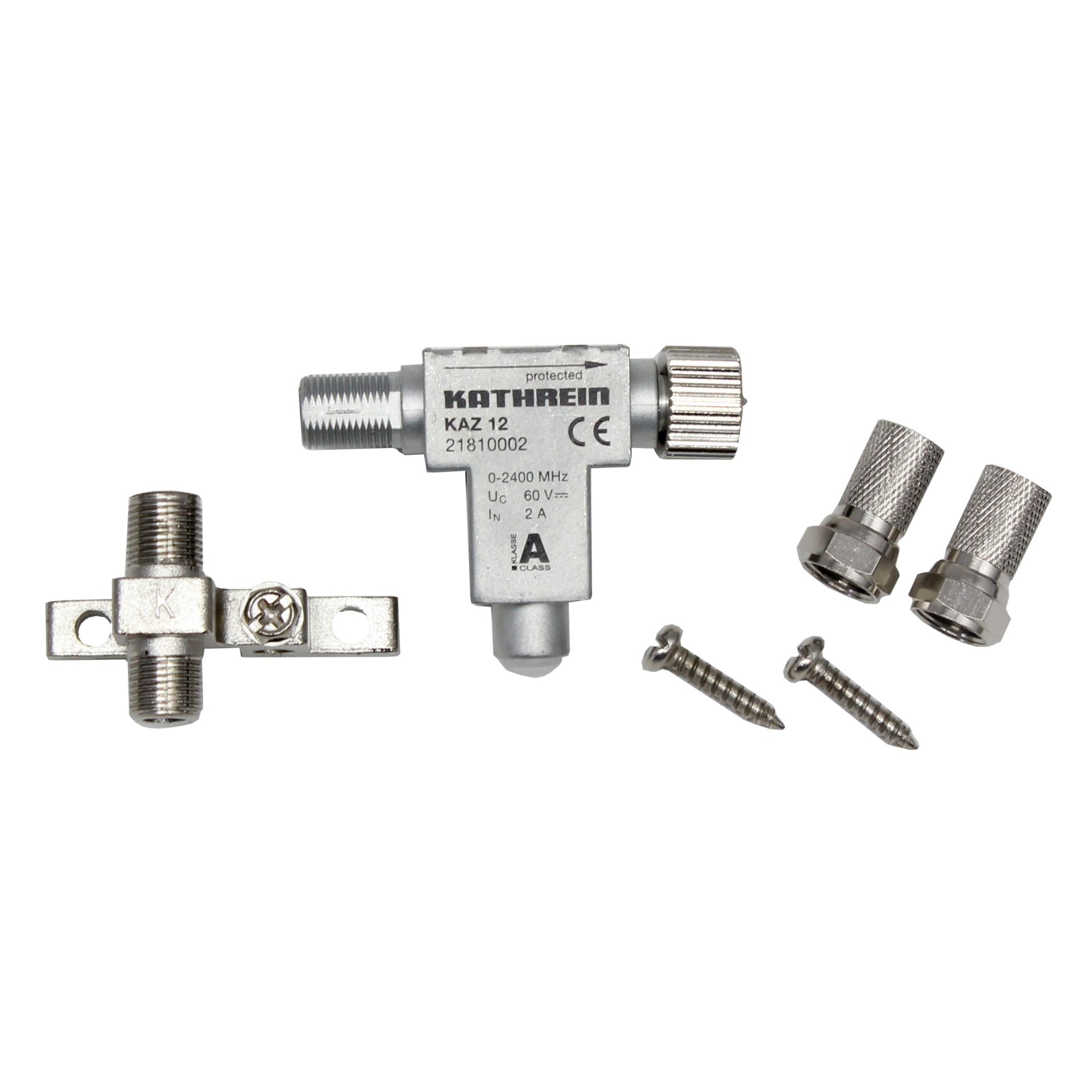 Der Kathrein Kaz 12 Blitzschutzableiter dient zum Schutz von SatTV-, KabelTV, DVB-T-TV-Empfangskomponenten. Idealerweise wird er in Verbindung mit dem Kathrein Kaz 11 verwendet, um das Stromstoßableitvermögen zu erhöhen, und empfindliche Komponenten zu schützen.