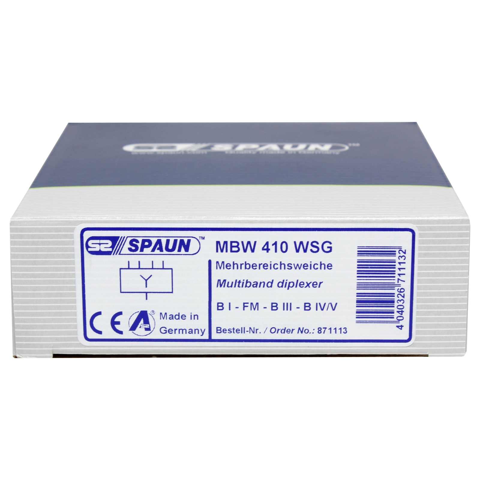 Mit dieser Spaun MBW 410 WSG Mehrbereichsweiche kann man mehrere terrestrische Antennensignale zusammenzuführen. Ein Anwendungsfall wäre, wenn man eine DVB-T Antenne und eine UKW-Antenne in einen Multischalter einschleusen möchte.