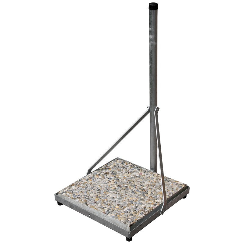 Dieser Antennenhalter erlaubt, die Installation der Satelliten-Antenne auf dem Boden. Schnell und einfach ist die Fixierung der Antenne mit dieser Halteung möglich. Die Halterung besteht aus feuerverzinktem Stahl. Der Fuß dieser Halterung hat eine quadratische Grundfläche von 52 x 52cm und erlaubt es eine massive 25kg Waschbetonplatte aufzunehmen. Der Mast ist 100cm hoch. Der Rohrdurchmesser beträgt 40mm. Der Halter hat auf der Unterseite vier Schutzgummis.
