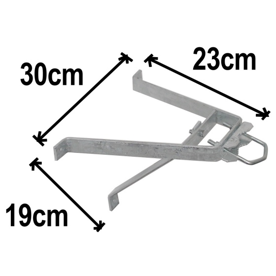 Diese Wandhalterung ist zur Befestigung von Sat-Antennen konzipiert und ermöglicht das Anbringen einer Satantenne an der Hauswand. Als Material wurde Stahl verwendet. Um die Wetterbeständigkeit der Halterung zu garantieren, wurde die Halterung feuerverzinkt. Der erreichbare Wandabstand beträgt 23cm. Die Halterung besteht aus zwei identischen Teilen. Ein Teil ist mit einem zusätzlichen Stützfuß versehen. Die Halterung eignet sich für einen Mast bis zu einer Stärke von 5cm.