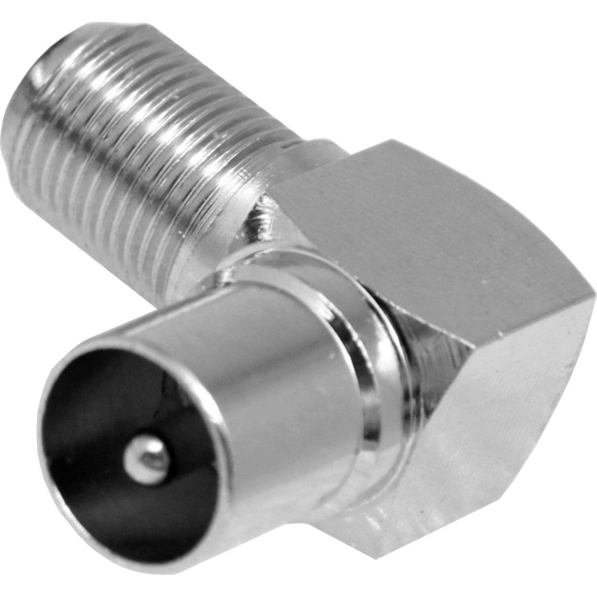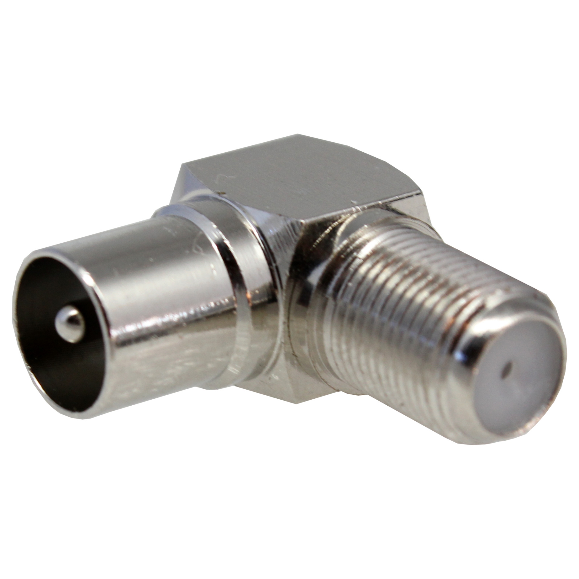Dieser Winkelkupplungsstecker mit F-Kupplung und IEC-Stecker eignet sich für Standard IEC bzw. F-Stecker.